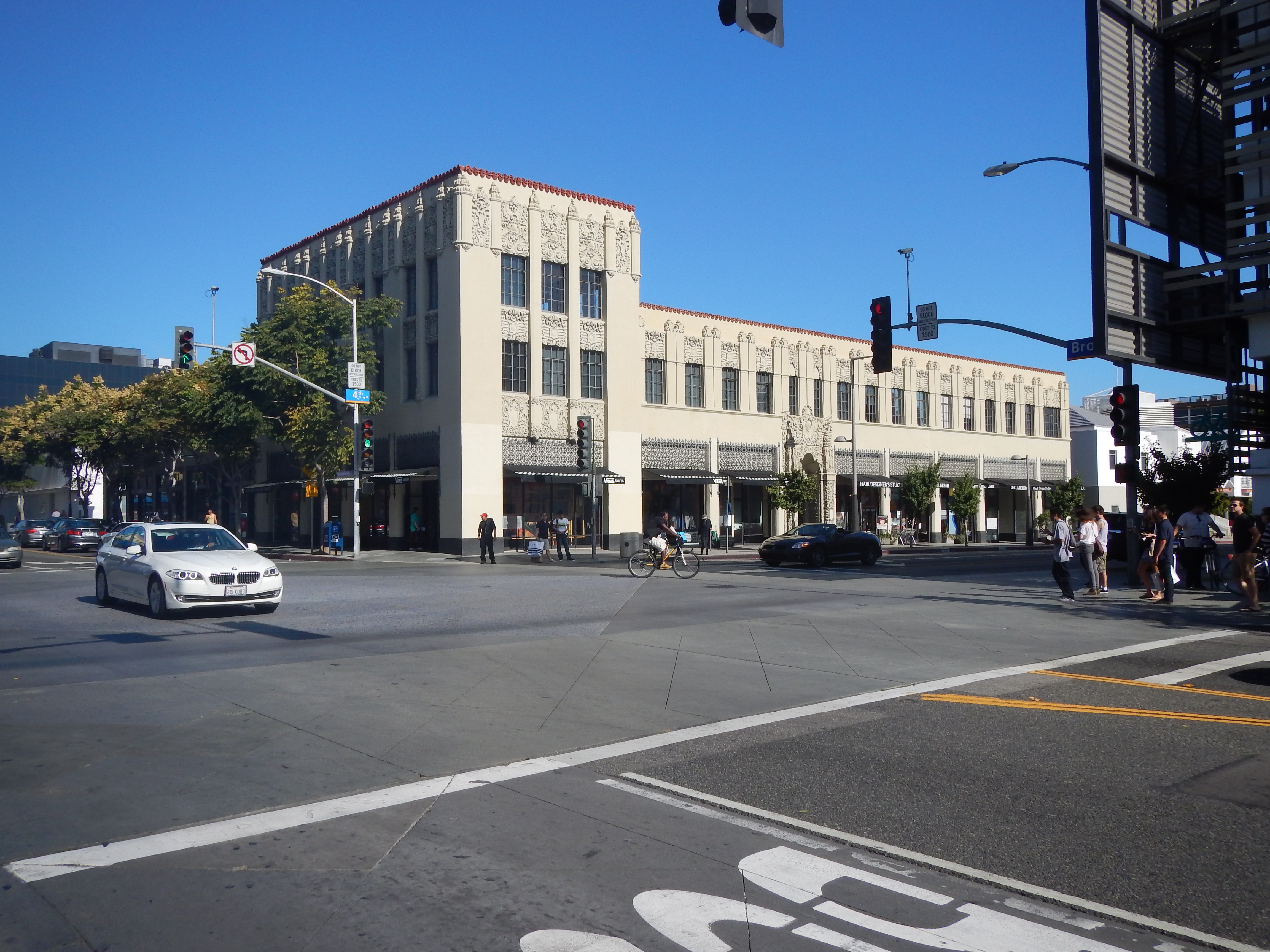Parking was fairly inexpensive. I parked in a garage on 4th where there first 90 minutes are free, $1 for an additional hour and then $1.50 for each additional half hour. For lunch, I had a hot dog from a food truck along Ocean called Nora’s Hot Dogs. Very tasty and inexpensive! Since I’m interested in learning about the history and architecture of the places I visit, I decided to buy a self-guided tour booklet published by the Santa Monica Conservancy, which describes several of the structures in downtown Santa Monica. The city is full of Art Deco treasures and buildings that reflect the city’s many boom and bust periods in the last century of more. Here is an example of one of my favorites.