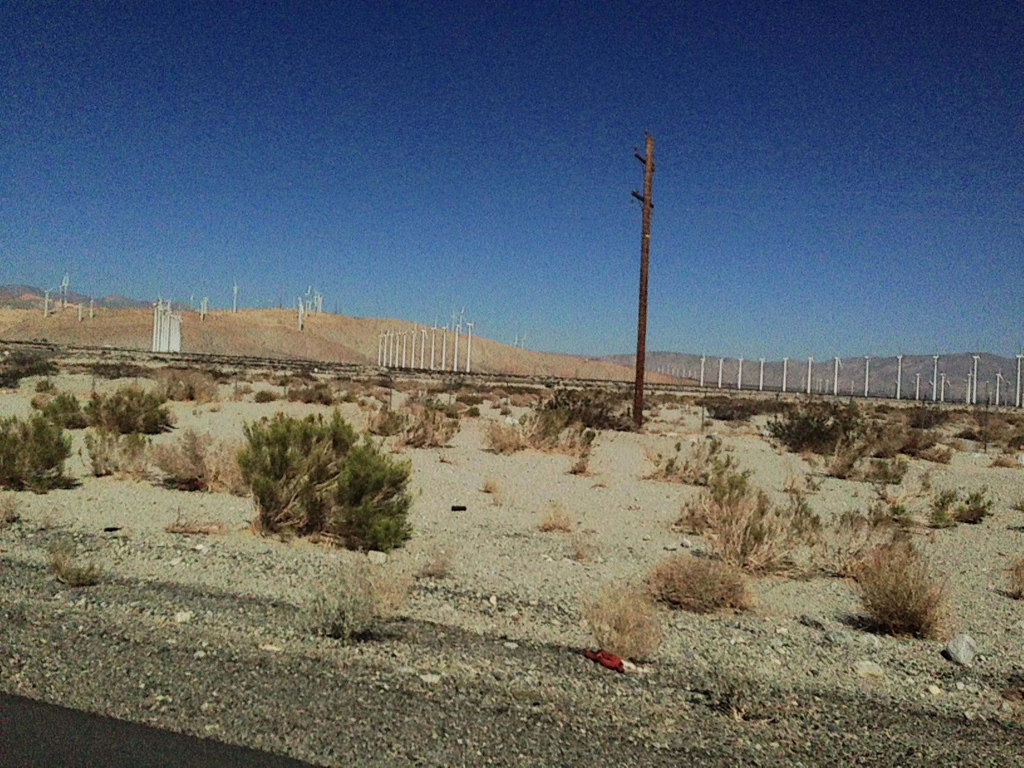 As we drove away from Palm Springs, I was struck by the numerous windmills standing in the valley. Since we arrived at night we didn’t get to see this on our way in.