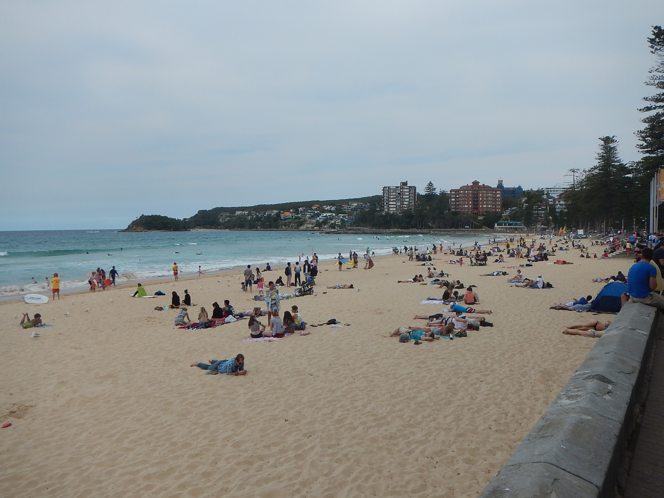 Manly is a pleasant, laid back, boat and beach town. People were out enjoying the water on a Sunday afternoon and having lunch and drinks by the marina. We stopped for lunch at the Manly Wharf and then walked to the other side of the peninsula along the promenade of the beach. Aussies like to drink … a lot. We noticed a few passed out face down in the sand.