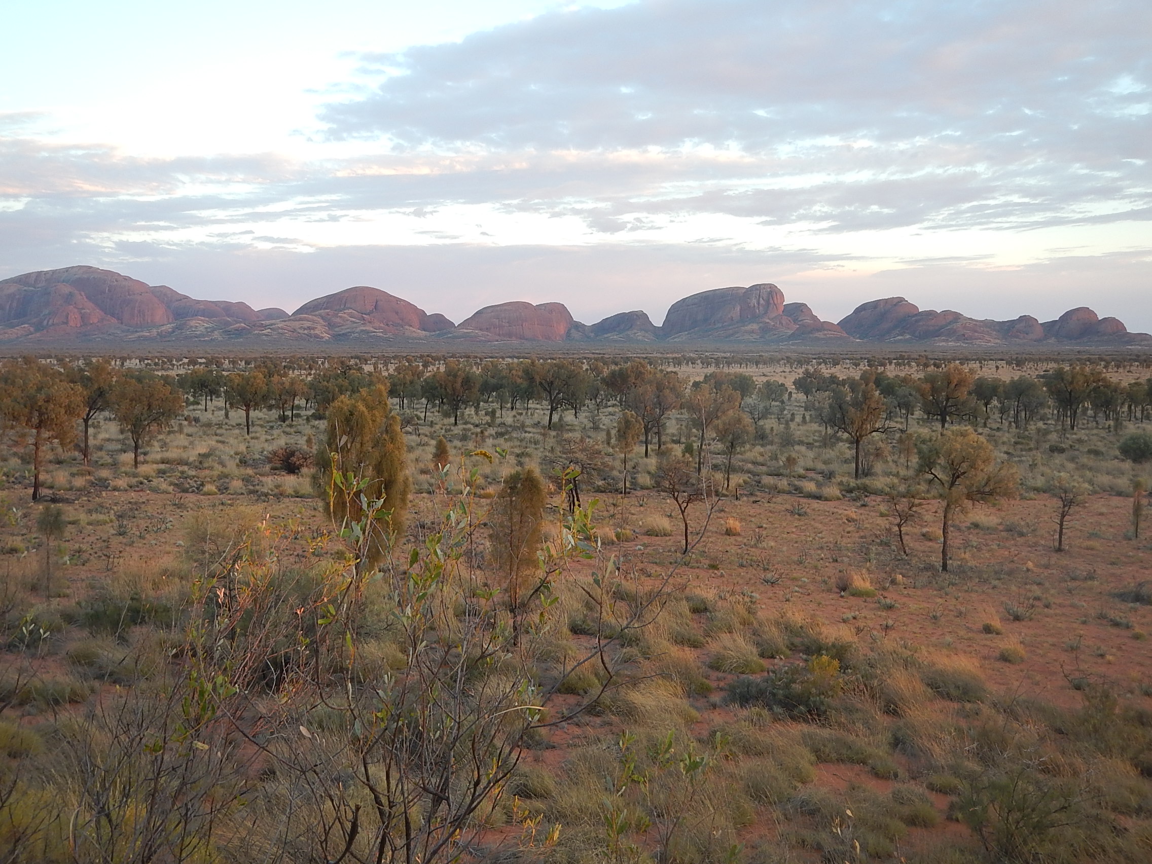 From the Kata-Tjuta sunrise viewing platform, you can also see Uluru off in the distance. The cloud formations that morning made for some great photography.