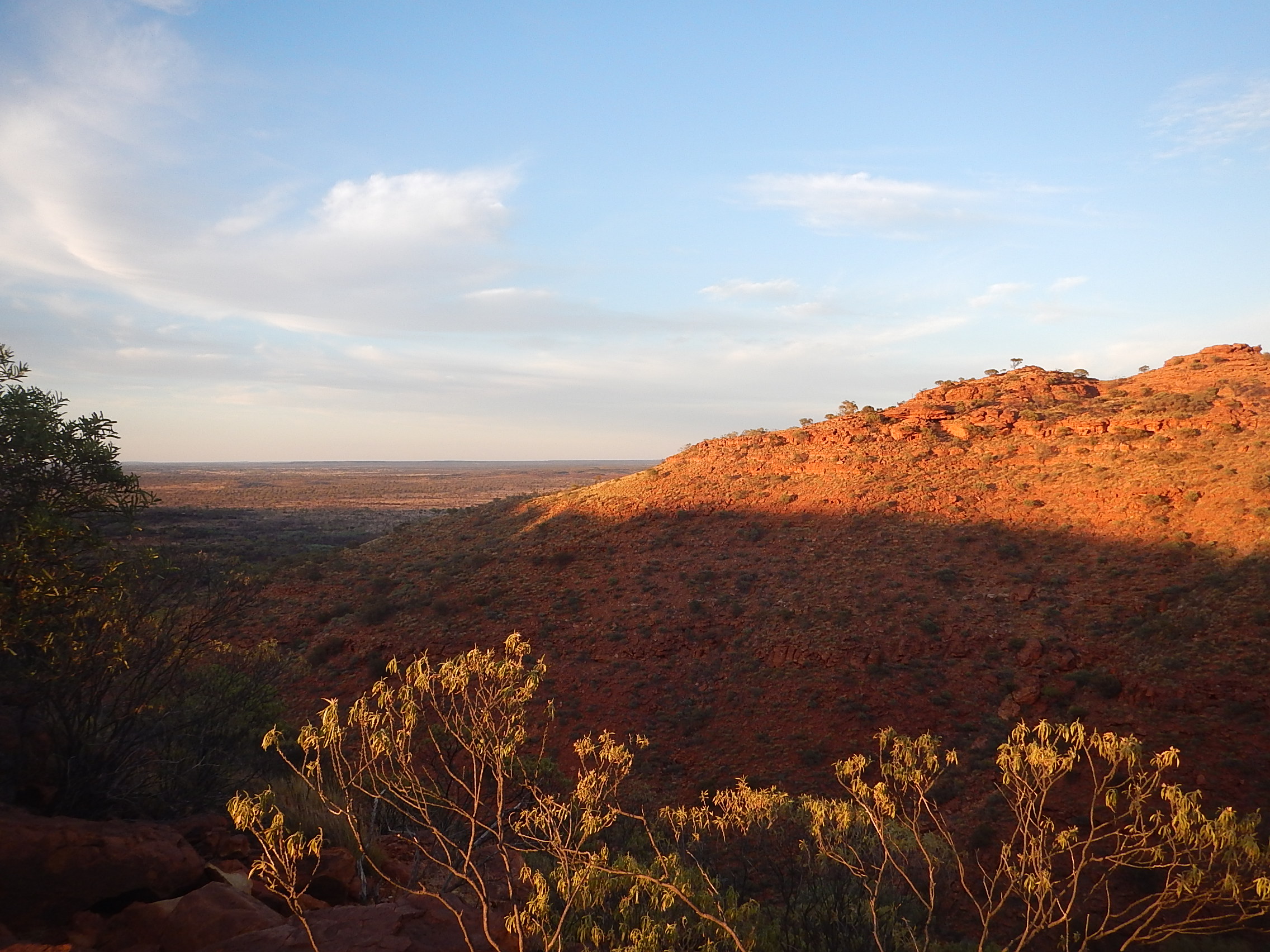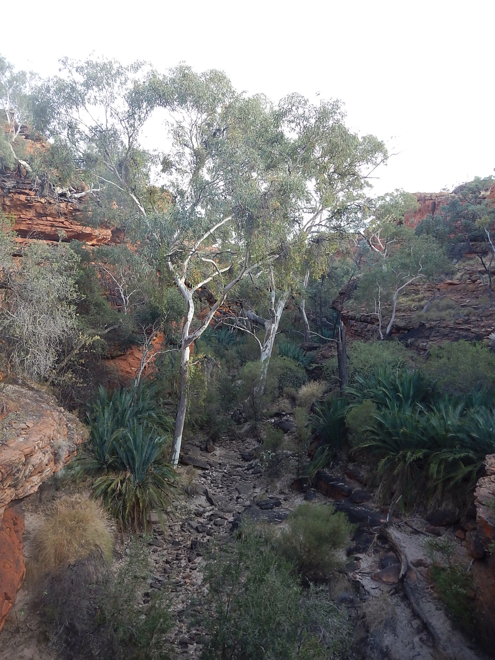 We arrived in Kings Canyon in the afternoon after a long drive from Uluru.  The day was slightly overcast with some drizzle.  We stayed at the Kings Canyon Resort, which is actually a campground relatively close to the canyon.  Some of us took a ride on quadbikes through the rolling red hills and around scrubby trees blackened by past wildfires.  Up the gradual ridges you could see the red rocks of Kings Canyon.