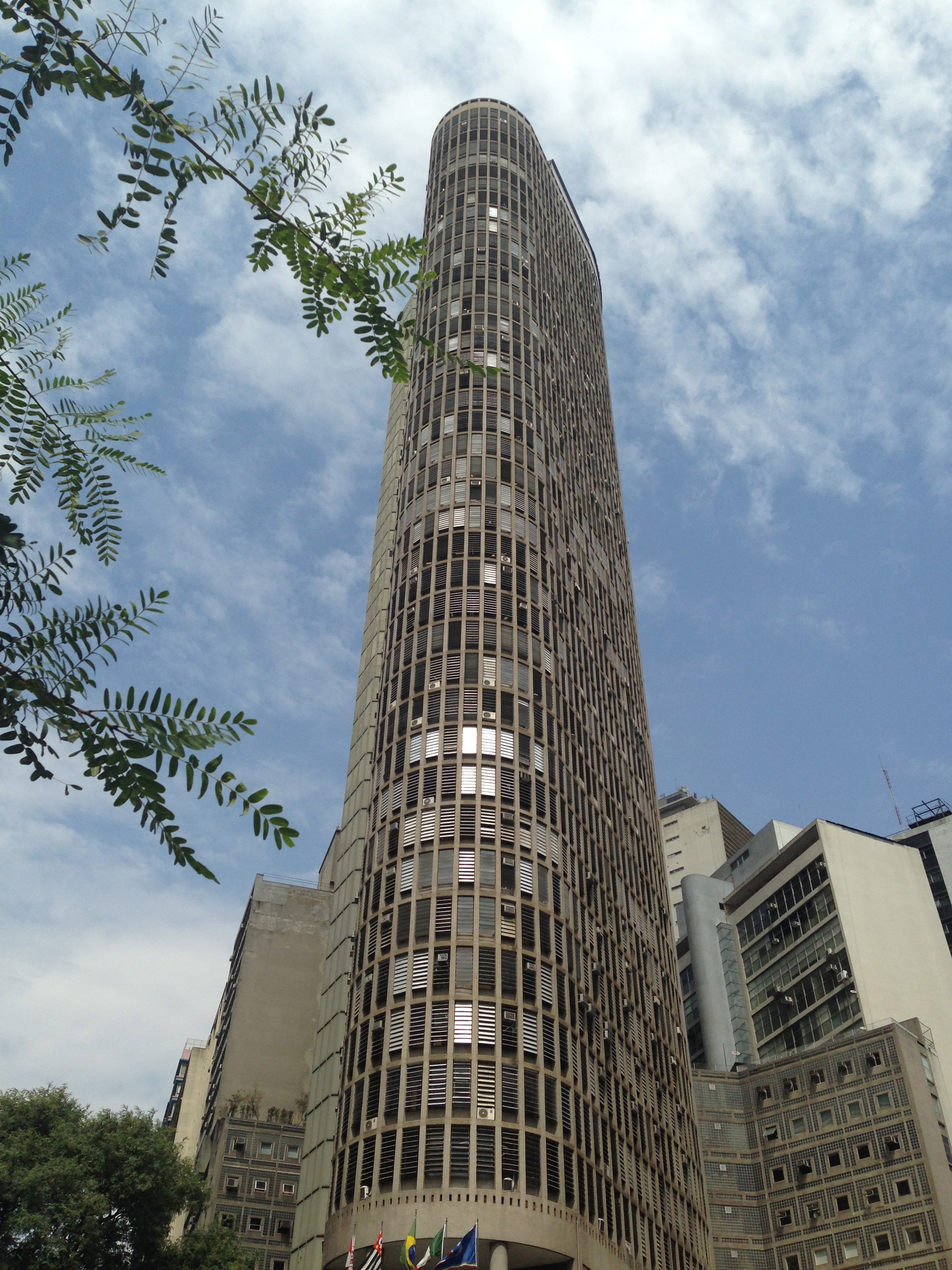 The idea for the building came from an association of Italian immigrants to São Paulo known as the Circolo Italiano.  Prior to the building’s construction, the organization’s headquarters sat on the present location of the skyscrpaer in a small mansion (pallazina). The group had occupied this location since 1923.  From 1942 to 1950, due to Italy’s involvement with the Axis Powers during World War II, the Brazilian government shut down the Circolo Italiano.  The club resumed activities in 1952, but started to make plans to tear the pallazina down and have a skyscraper built on the same site. Builder Otto Meinberg initiated the first building plans and invited architects to compete for the building’s design.  Architect Frank Heep was the winner and helped develop the building’s unique curved shape.   The Edifício Itália was constructed between 1956 and 1965. It has 46 stories and stands roughly 550 feet tall, making it the second tallest building in São Paulo.  The tallest building is actually the ghastly Mirante do Vale located near the  Vale do Anhangabaú.  The Edifício Itália is protected and preserved as an example of Brazil’s architectural heritage by the country’s Patrimônio Historico.  Today, the Circolo Italiano continues occupy space in the building.