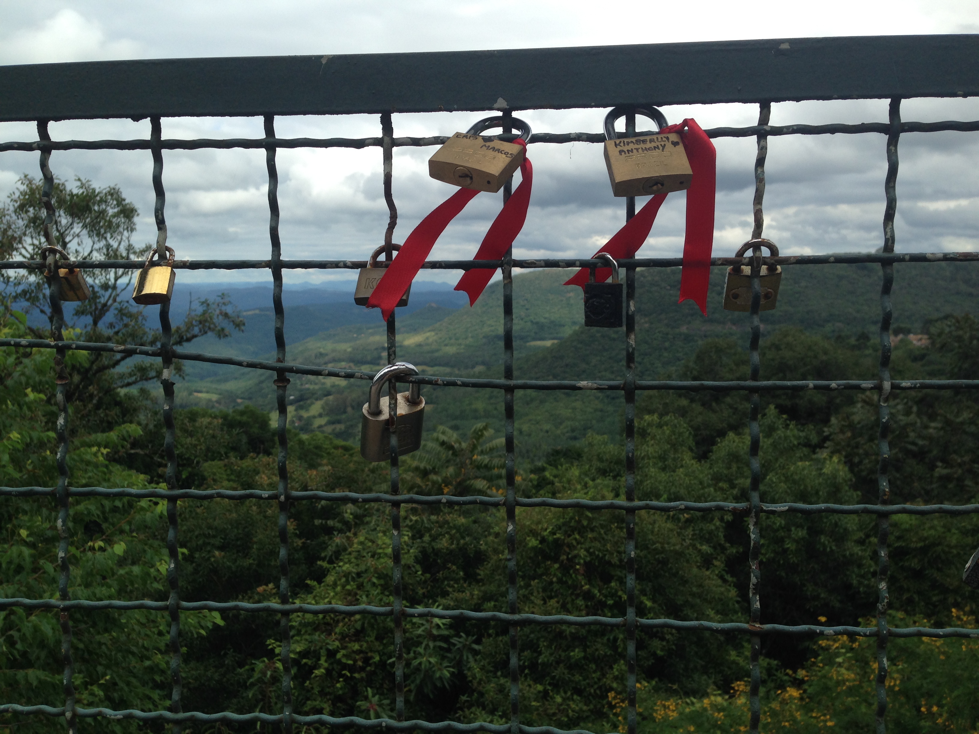 One of the more magnificient views in Gramado is the Belvedere Vale do Quilombo, an 850 meter high overlook into a valley along the Avenida das Hortênsias, the road that leads to Canela. Tradition has it that lovers come here and bring locks to hang on the fence. There is a cheesy looking Christmas theme park (the Aldeai do Papai Noel) nearby too that also offers views of the valley as well.