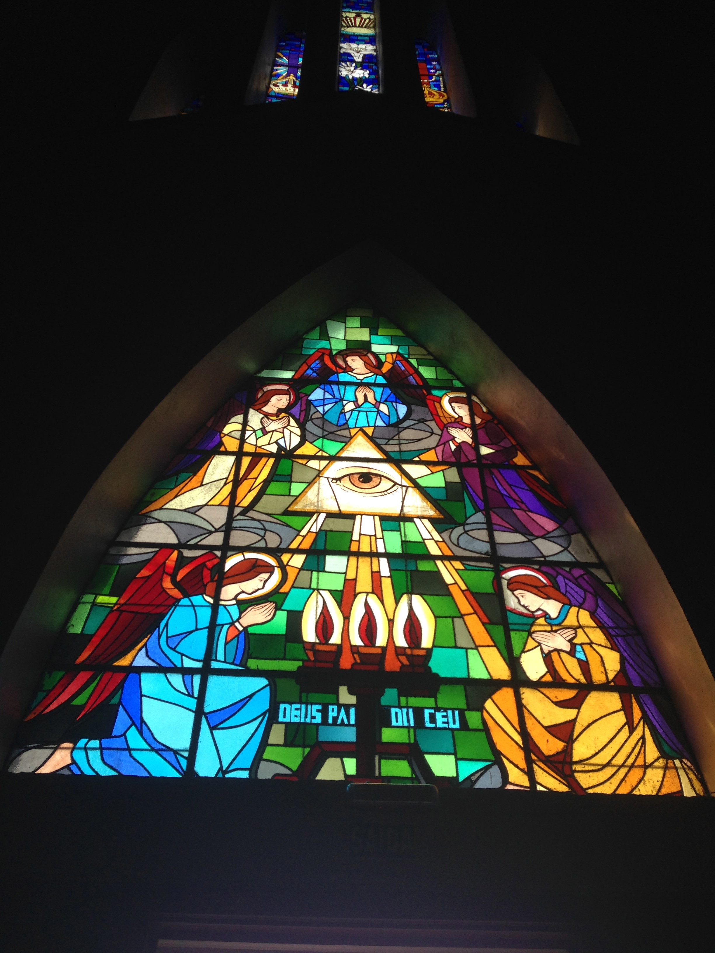 One of the highlights of Canela is the magnificent cathedral that towers over the town. It is a Gothic structure made of stone with several beautiful stained glass windows. One of the windows has the “Eye of Providence,” the depiction of an eye in a triangle, which many will recognize from the US dollar and its associations with the Masons or even the Illuminati.