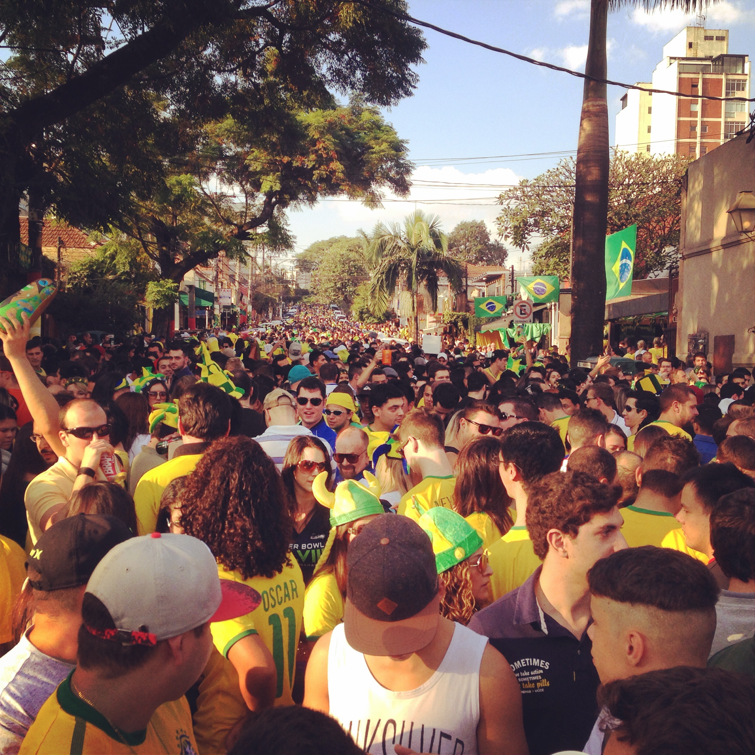 My first couple of visits to Vila Madalena were to watch games during the World Cup. The first time was for the game between Brazil and Cameroon. The streets were as people-packed as New Orleans’ French Quarter during Mardi Gras and it was difficult to find a place to watch the game that wasn’t charging an exorbitant cover charge. All the while, it was a very festive and fun atmosphere. I came back to Vila Madalena again to watch the final game of the World Cup between Germany and Argentina. This time the streets weren’t nearly as crowded (Brazilian fans were still in shock from the 7-1 defeat by Germany). The military police were out in full force, but it seemed that the mayhem they were expecting never actually materialized there. My friends and I were able to watch the game in a restaurant/bar called Seu Domingos (Rua Fidalga 209). It was a nice place to share bottles of Original and snack on fried food while watching the game.